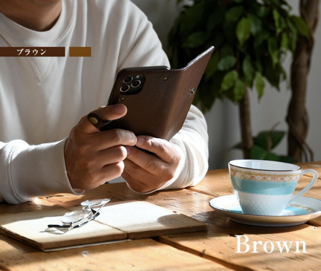 主要多機種対応のスマホケース。上質の本革を使用した手帳型ケースです。