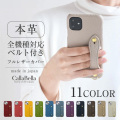 留めピンやDカンのカラーが選べる全機種対応、全面革貼りベルト付きスマホケースです。ベルトは落下防止に役立つだけでなく、スタンドとしても使用できる便利な2way仕様。