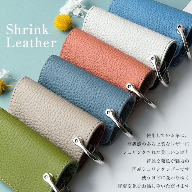 高級感のある上質なレザーにシュリンクされた美しいシボと綺麗な発色が魅力の国産シュリンクレザーを使用。