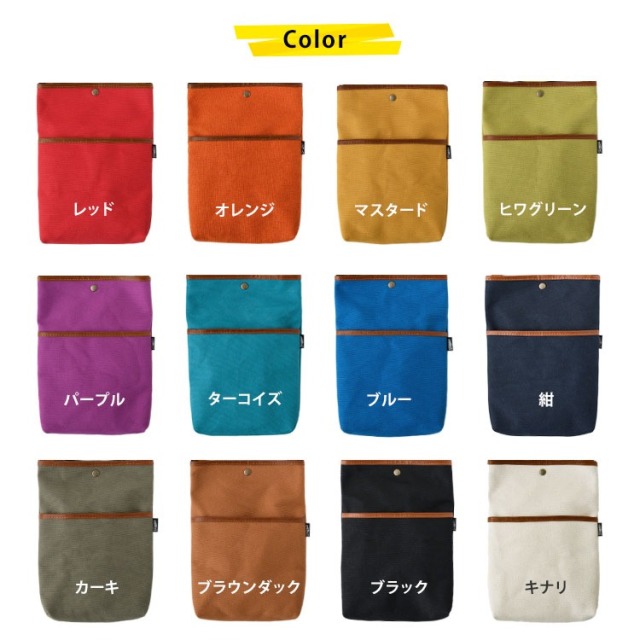 | 本体カラー | レッド、ブルー、カーキ、ブラウンダック、ブラック、キナリ、紺、オレンジ、マスタード、ヒワグリーン、ターコイズ、パープル |
