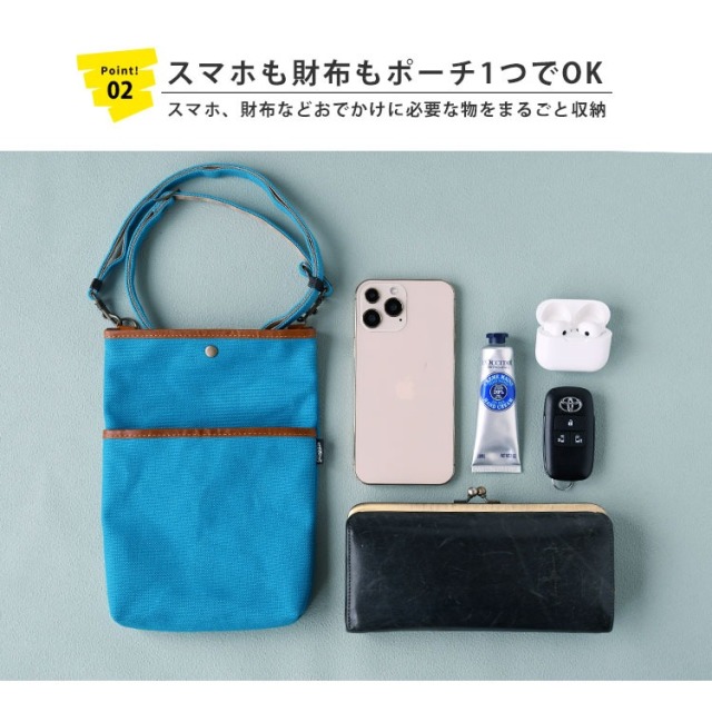 お財布やスマホなどはもちろん、それ以外にもいろいろなものを収納できますので、 あなたのアイデアでご活用下さい。