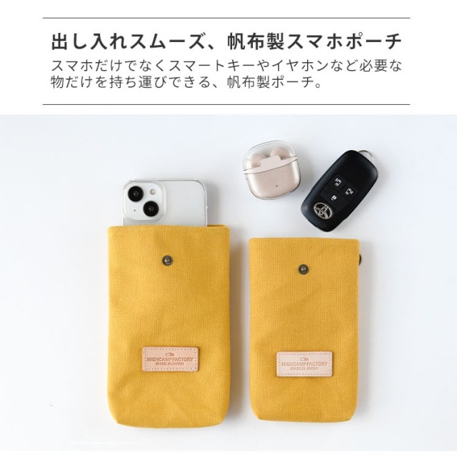 | 商品名 | HIGHCAMPブランド オリジナル「倉敷帆布 革タグ スマホポーチ」 |