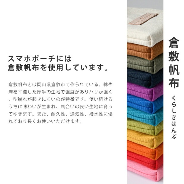 倉敷帆布を使用した丈夫なスマホポーチです。