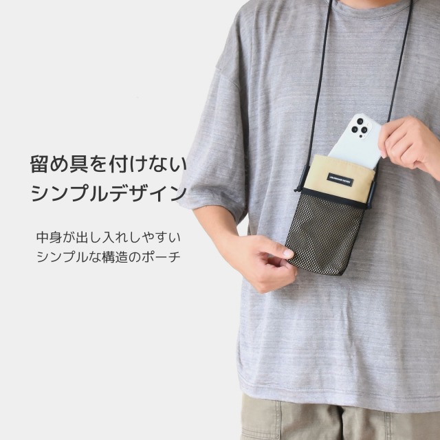リップストップナイロンを使用した、便利なポケット付きのネックポーチです。