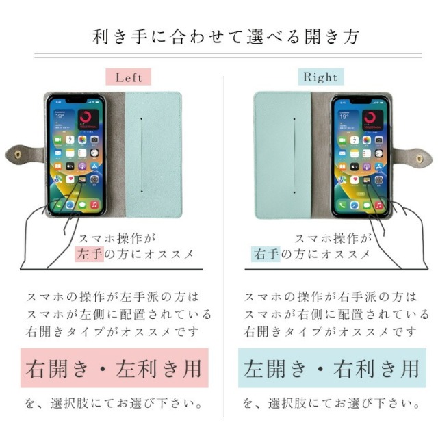 ・左開き(右利き用)、右開き(左利き用)を選べます。 ・スリットタイプのカードホルダー付き。 ・ストラップホールの位置はお選びいただけます。 ・使うほどに育つ手帳型本革レザーケースです。経年変化をお楽しみください。 |